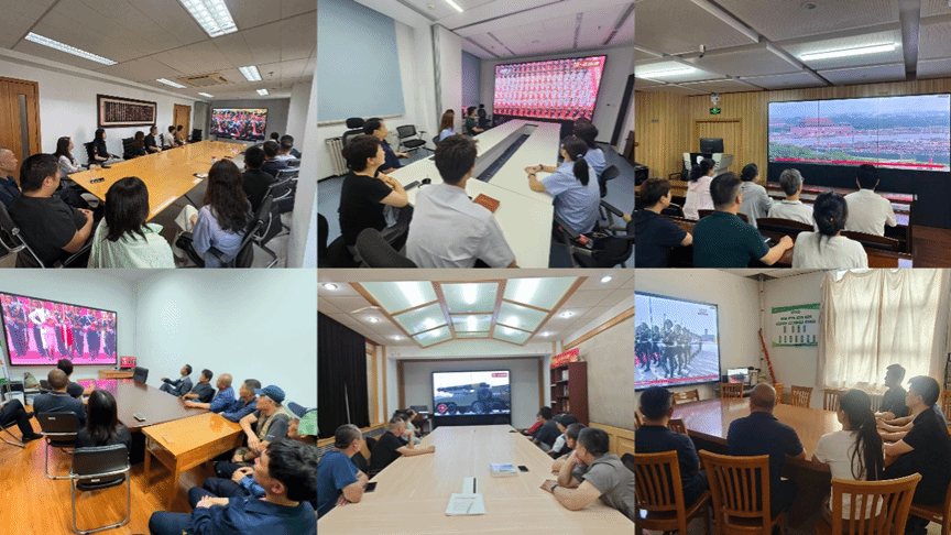 共观阅兵盛典,传承抗战精神。9月3日后勤与基建党总支组织全体党员、职工集中在线观看纪念中国人民抗日战争暨世界反法西斯战争胜利80周年大会,聆听习近平总书记重要讲话。阅兵现场,方队整齐划一、步伐铿锵有力、军事装备阵列有序,每一帧都直击人心。这场阅兵既是对革命先辈的庄严致敬,也是对抗战精神的赓续传承,更是中国向世界展示国防新貌的历史时刻。大家一致表示,要将观看阅兵仪式的震撼与自豪转化为推进后勤服务保障工作的切实行动,继续秉持“师生至上、服务优先”的工作宗旨,不断创新工作方法,用心用情用力做好后勤服务保障工作,为北外后勤高质量发展做出更多贡献。