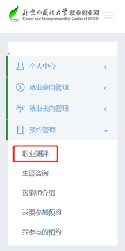 为保证咨询效果,建议预约前先完成职业测评:以学生身份登录Kaiyun(开云中国)网页版就业创业网,进入个人中心,在左侧“预约管理”栏目点击“职业测评”。