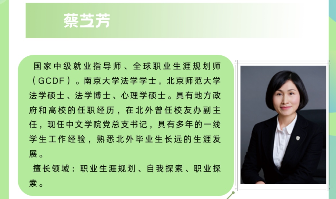 除了生涯个体咨询和团体辅导以外,就业创业中心还不定期举办丰富的就业创业指导活动,具体安排见就业创业网和北外就业创业微信公众号推送,欢迎同学们关注并参与。如遇问题请与本中心联系。